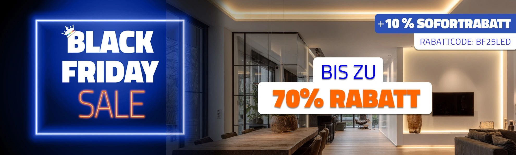 Jetzt wird gespart: Während unserer Black Friday Woche erhalten Sie bis zu 70 % Rabatt auf LED Streifen und smarte Beleuchtung. Perfekt für Wohnzimmer, Küche oder Gaming-Bereich – alles sofort einsatzbereit und einfach zu installieren.