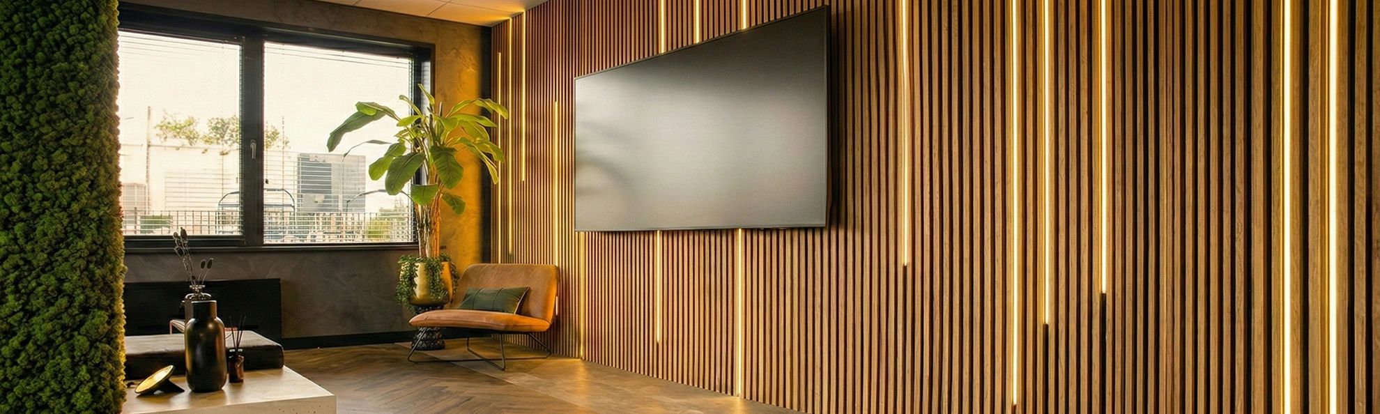 - Beleuchtung hinter Holzpaneelen oder Lamellenwänden