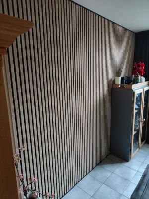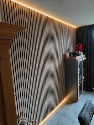 Wir haben das Produkt vertikal zwischen Holzverkleidungen platziert. Dadurch entsteht ein wunderbar schöner sanfter Glanz.