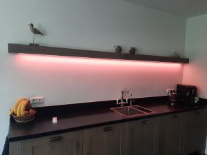 Sie erhalten ein komplettes Set mit einem RGBWW Pro LED-Streifen. Dieses Set enthält einen passenden Adapter, Controller, Anschlussmaterial und Bedienung. Sie wählen die Art der Bedienung selbst, wie z.B. ein Wand(Touch)-Panel, eine Fernbedienung oder die Bedienung über die App. Der LED-Streifen ist außerdem mit einem Anschlussstecker und starkem doppelseitigem 3M Klebeband ausgestattet. Wenn Sie den LED-Streifen auf rauem Material montieren möchten oder wenn die LEDs sichtbar sind, empfehlen wir Ihnen, zusätzlich ein LED-Streifenprofil zu verwenden.