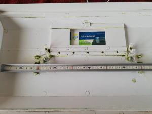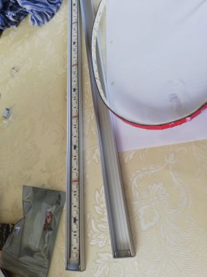 Auf diese Klemmen passen Aluminiumprofile. Und hier habe ich die LED aufgeklebt. Wenn es also defekt ist, müssen Sie das Aluminiumprofil entfernen.