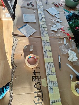 Das Kleben der Streifen klappte gut, allerdings waren zwei der fünf Leimtuben nicht mehr ganz frisch und teilweise ausgehärtet, sodass ich aufpassen musste.