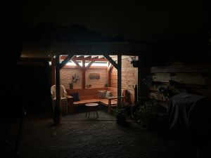 Bietet auch viel Licht, oben auf dem Vordach erhellt es den halben Garten.