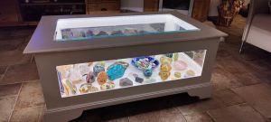 Sehr zufrieden mit diesem kompletten LED-Streifen-Set. Passt sehr gut in unseren Couchtisch mit Mineralien....
