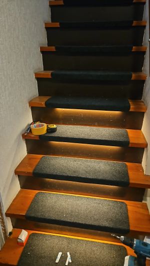 Leider ist der Kabelbaum für die Treppenbeleuchtung nicht erweiterbar, so dass man für 17 Stufen tatsächlich 2 Treppensätze benötigt.